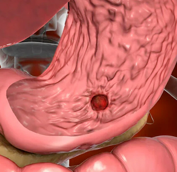 A gastric or peptic ulcer is a sore in the mucosa that lines the stomach or duodenum, which is the first part of the small intestine. The most common symptom is a burning stomach.
